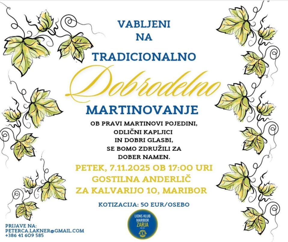 Zarje vabimo na tradicionalno dobrodelno Martinovanje!